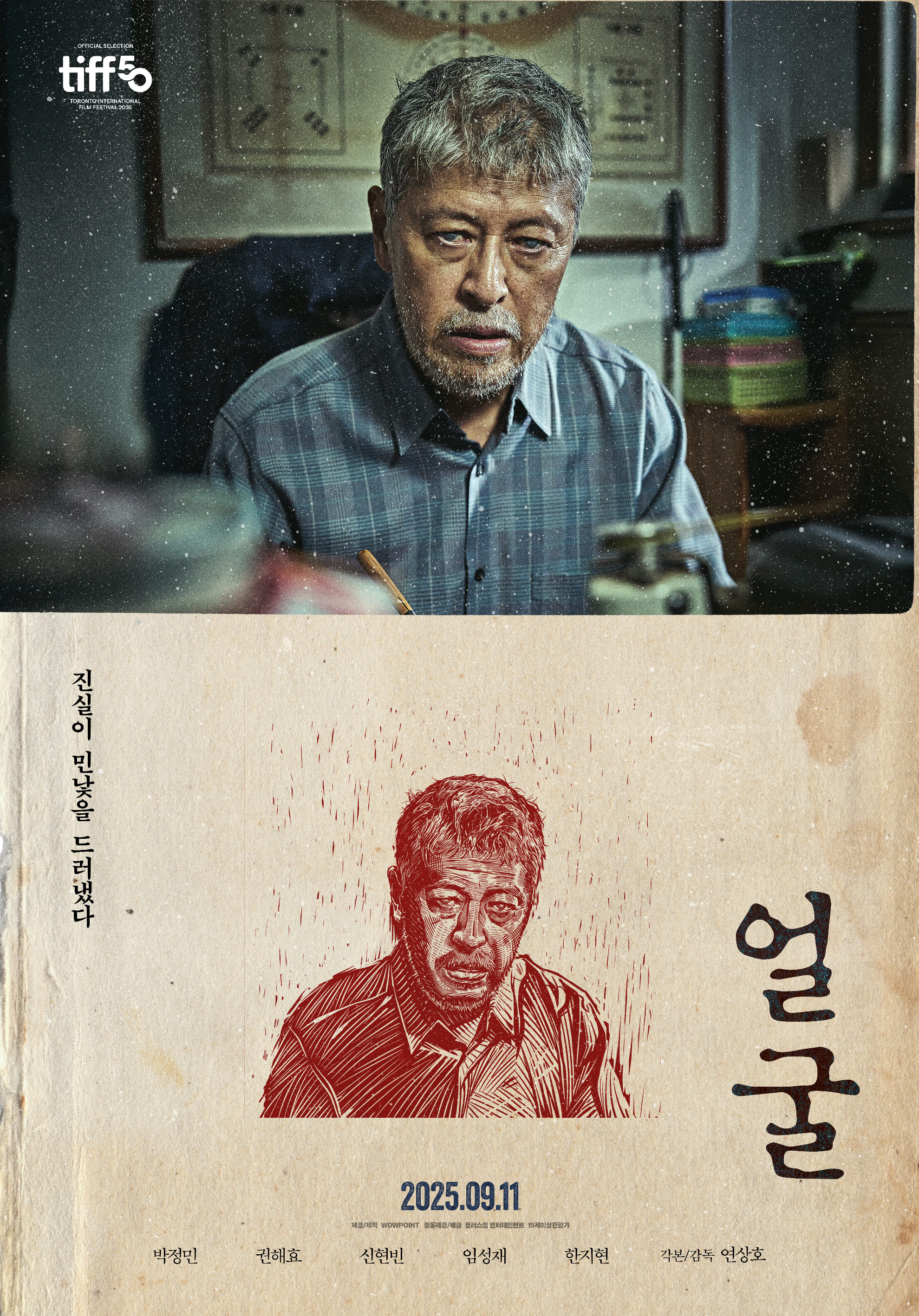 <얼굴>은 연상호 감독의 전작들이 보여주었던 장점은 극대화하고 단점은 영리하게 보완한 수작입니다. 특히 시각장애인 부자를 연기한 권해효와 박정민의 연기는 감탄을 자아냅니다. 두 배우는 단순히 눈을 감는 것을 넘어, 보이지 않는 세상 속에서 살아가는 인물의 내면과 미세한 감정 변화까지 완벽하게 표현해내며 극의 설득력을 높입니다. 그리고 마침내 영화의 마지막, 모든 비밀이 밝혀지는 순간 드러나는 정영희(신현빈 분)의 얼굴은 그 자체로 강력한 메시지를 전달하며 깊은 여운을 남깁니다. <얼굴>은 저예산 영화의 한계를 뛰어넘어, 잘 짜인 이야기와 배우들의 열연만으로도 얼마나 밀도 높고 강렬한 영화가 탄생할 수 있는지를 증명한 기념비적인 작품으로 기억될 것입니다.