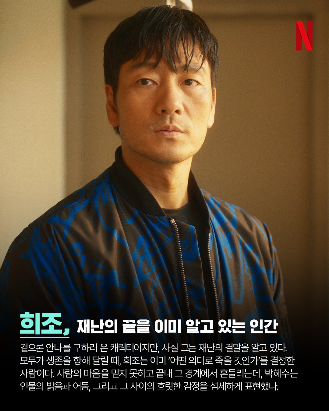 의문의 전화 한 통, 재난물에서 SF로의 장르 변주 생존을 위한 사투가 벌어지는 와중에 안나에게 걸려온 전화 한 통은 영화의 흐름을 완전히 뒤바꿔 놓습니다. 박해수가 연기한 '손희조'는 안나에게 믿기 힘든 이야기를 전합니다. 지금 벌어지는 대홍수는 단순한 기상이변이 아니라 소행성 충돌로 인한 해수면 상승이며, 곧이어 남은 소행성이 지구에 충돌하면 인류는 멸망할 것이라는 종말론적 예언입니다. 그리고 그는 안나에게 "당신이 개발한 '이모션 엔진'만이 인류를 구원할 유일한 희망"이라며 그녀를 구조하겠다고 말합니다. 이 시점부터 영화는 단순한 생존 재난물에서 인류 구원이라는 거창한 사명을 띤 SF 미스터리로 장르의 궤도를 수정합니다.