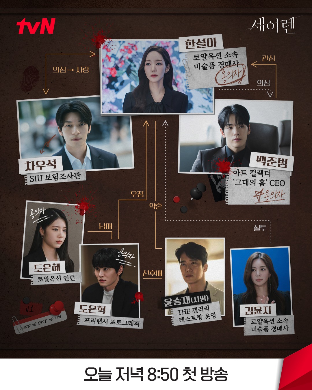 한설아의 비밀스러운 세계에 균열을 내기 위해 다가가는 차우석은 원래 뛰어난 직감과 행동력을 자랑하던 강력계 형사 출신입니다. 하지만 과거 자신의 친동생이 끔찍한 보험 사기 사건에 연루되는 뼈아픈 비극을 겪으면서, 그에 대한 죄책감과 책임감으로 경찰복을 벗고 사설 보험조사관으로 직업을 전향한 상처 많은 인물입니다. 형사 시절 길러진 날카로운 수사력과 특유의 집요함을 십분 발휘하여, 그가 한번 물고 늘어진 보험 사기 의심 건은 거의 대부분 진실이 밝혀지며 업계 검거율 1위를 달리고 있습니다. 범죄를 향한 그의 차가운 분노와 이성적인 추리력이 한설아라는 거대한 미스터리와 어떻게 충돌할지 기대를 모읍니다.